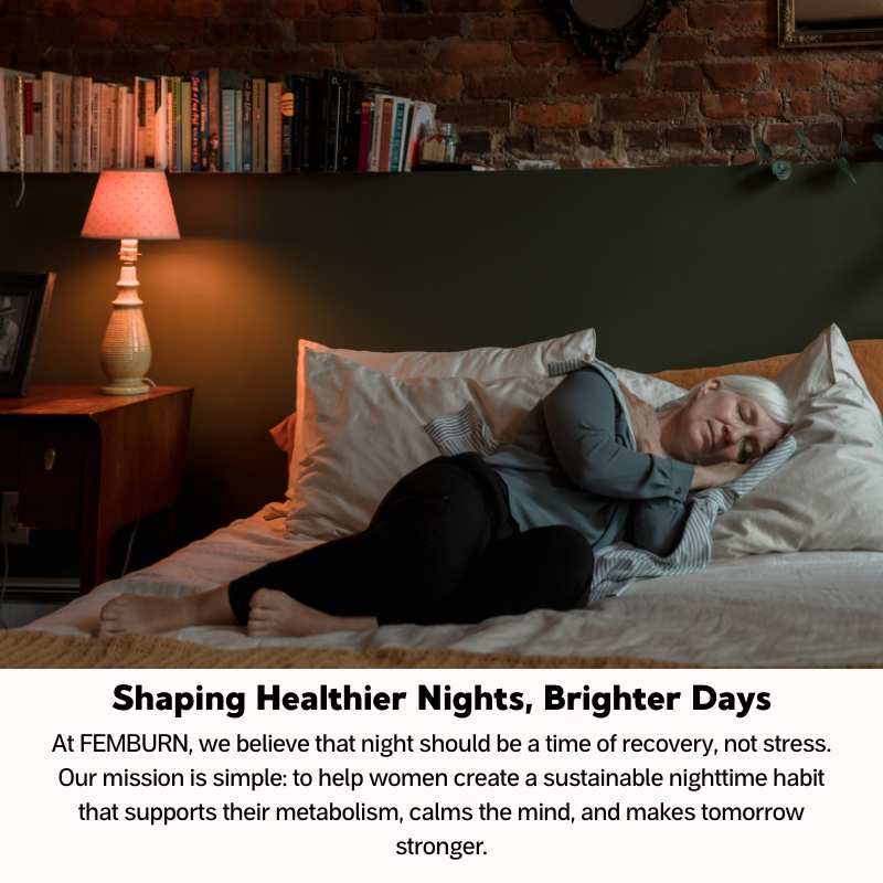 FEMBURN is a nightly capsule made with thoughtful actives such as white kidney bean, green coffee bean, L-theanine, lemon balm, and passionflower. Each ingredient is chosen for its role in supporting nighttime metabolism, calming the mind, and helping you maintain consistency—without jitters, without sugar.