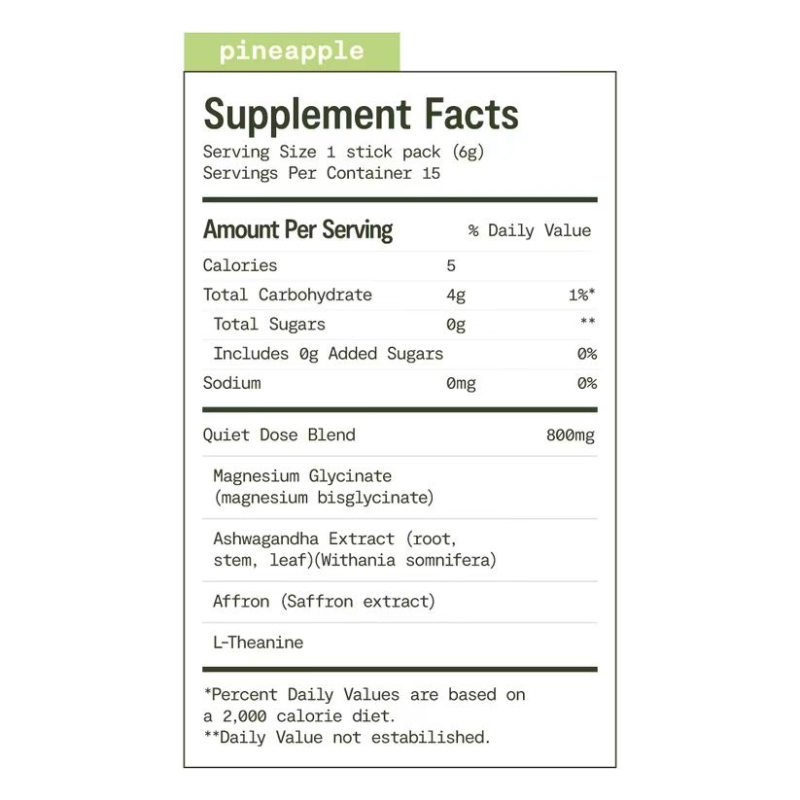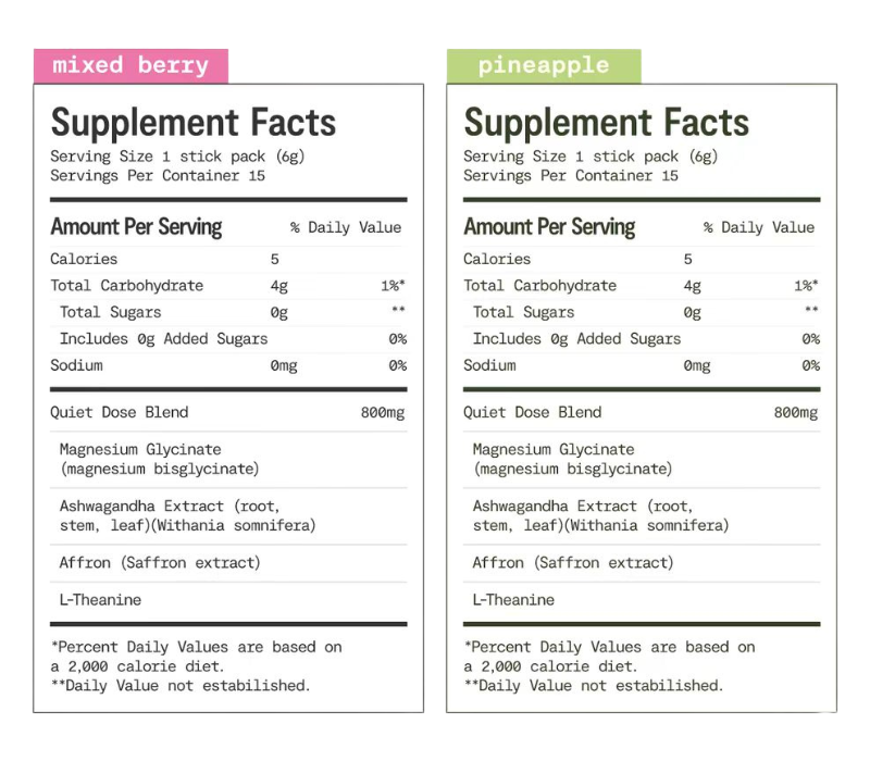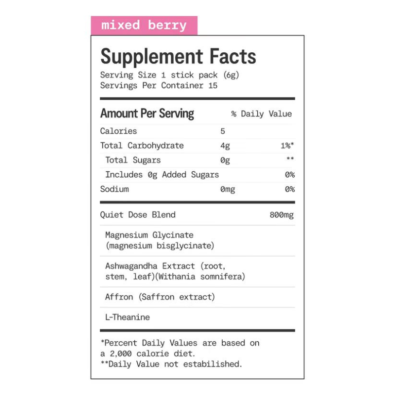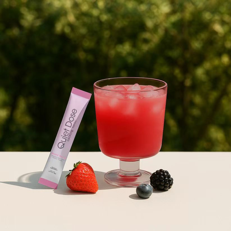 Quiet Dose delivers clinical-strength doses that actually work. Made with natural flavors and zero sugar - just 5 calories of pure, effective calm you'll crave.